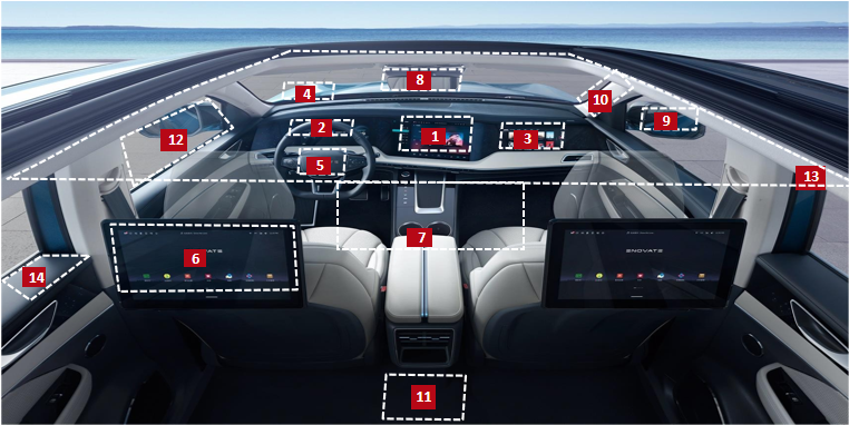 除上述三屏外,后艙的娛樂、CMS、A柱、扶手屏,包括將來的車窗顯示,天幕顯示等,車?yán)锏钠習(xí)絹碓蕉啵⒅饾u連到一起,實現(xiàn)車載屏顯的“無界化”設(shè)計,帶來更好的人車交互體驗。